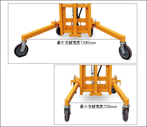 ? 支撐腿可根據(jù)不同尺寸的托盤進行調(diào)節(jié)??砂徇\55、85加侖的油桶。