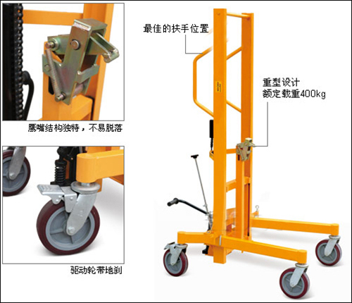 ? 符合人體工程學(xué)設(shè)計的油桶搬運車可起升、搬運、放置材質(zhì)為聚丙烯、鋼、纖維的油桶;