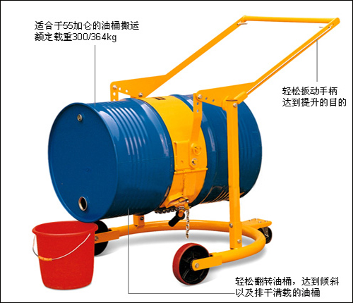 ? 顯著多功能性!油桶搬運車可起升,搬運,旋轉(zhuǎn),傾斜和排干滿載的油桶;