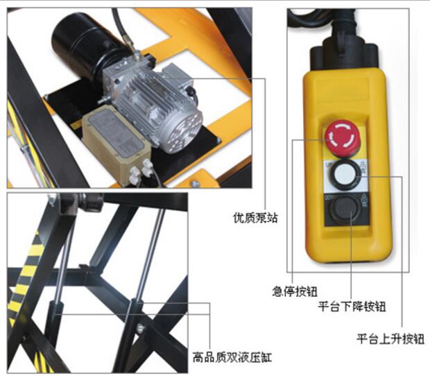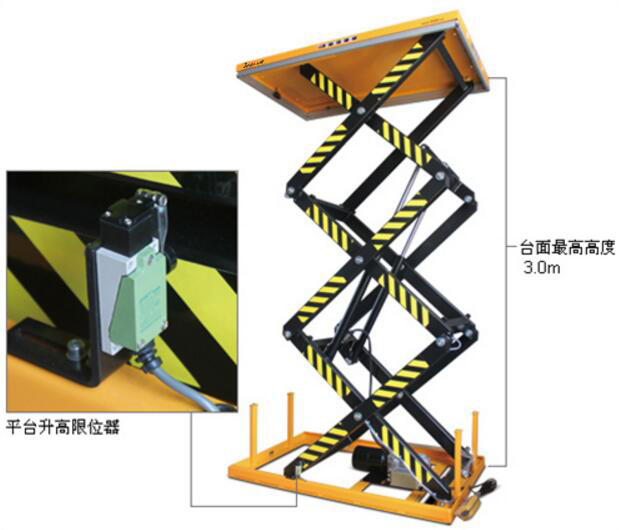 ? 臺面下方配有安全檔條裝置,當(dāng)臺面下降遇到障礙物停止下降,確保安全;