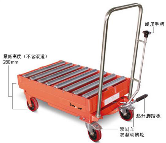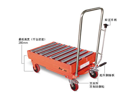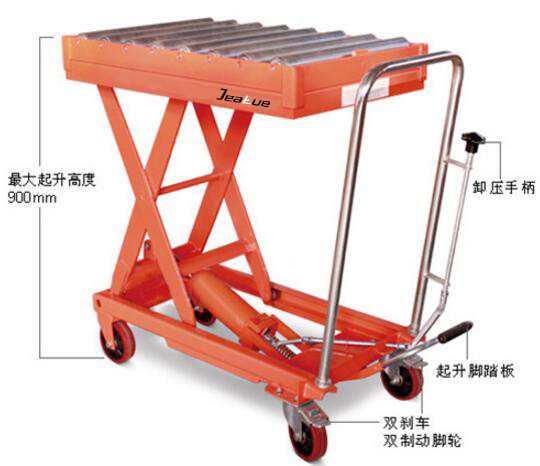 ? 通過腳踏式液壓泵工作,方便地使平臺起升至所需高度;