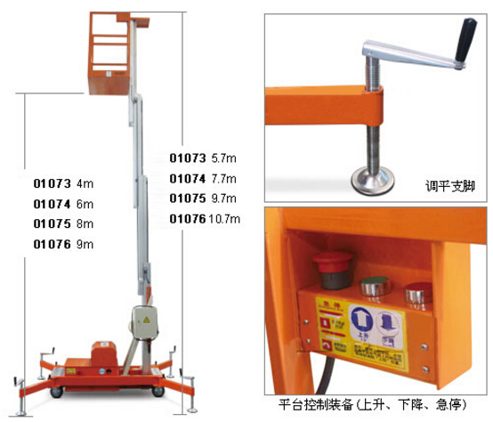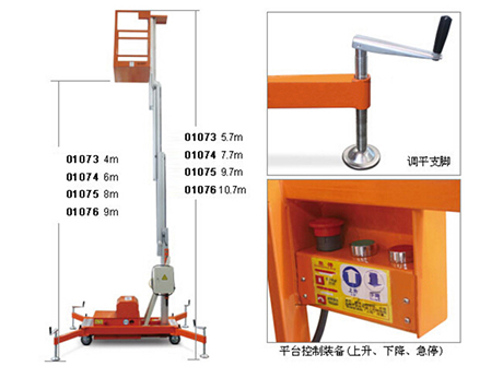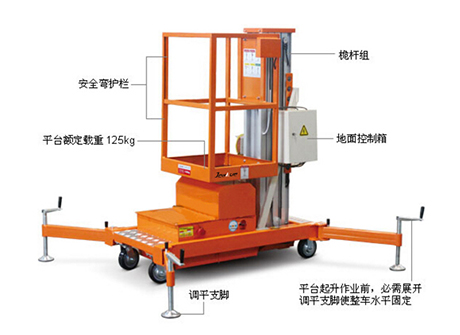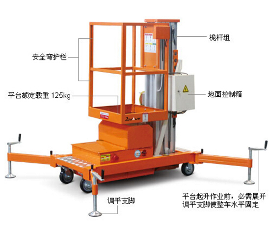 ? 升降桅柱全部用高強(qiáng)度鋁合金型材,整機(jī)重量輕,移動(dòng)十分輕便;