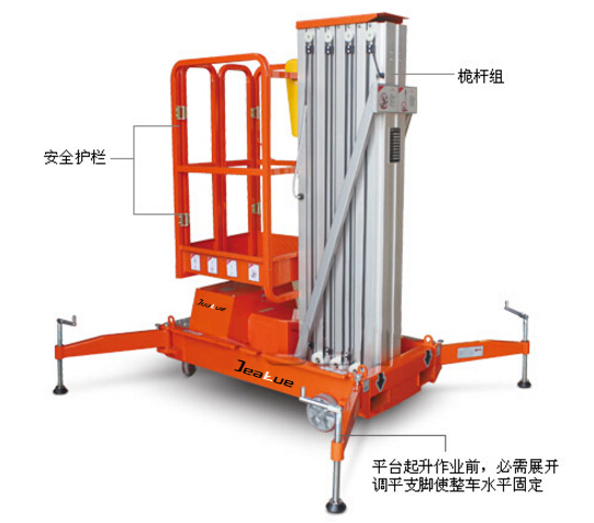 ·升降桅柱全部用高強(qiáng)度鋁合金型材,整機(jī)重量輕,移動(dòng)十分輕便