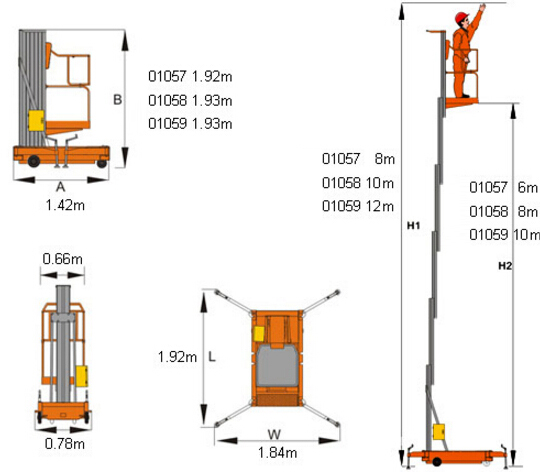 | 最大工作高度 | mm | 8000 | 10000 | 12000 |