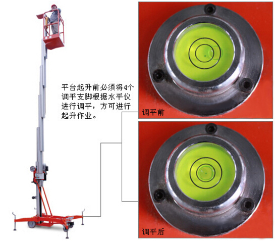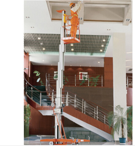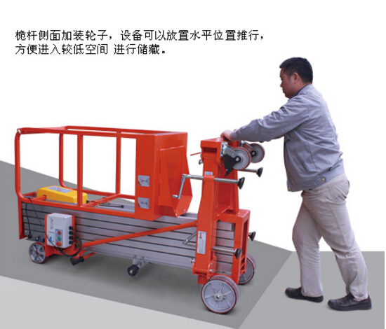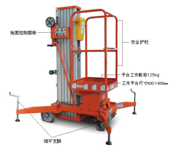 ? 長(zhǎng)降桅柱全部用高強(qiáng)度鋁合金型材,整機(jī)重量輕,移動(dòng)十分輕便;