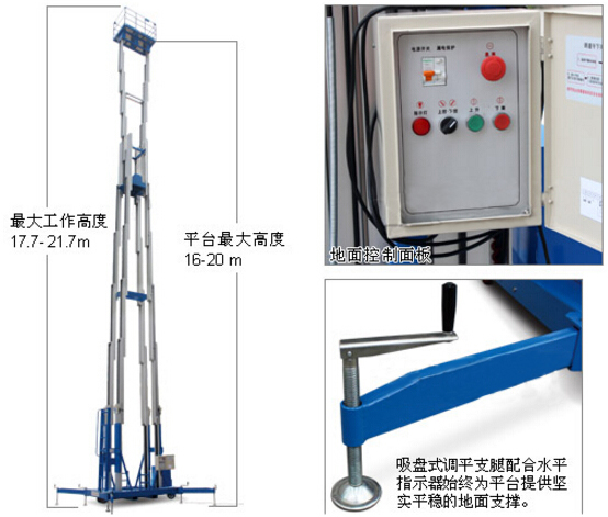 ? 平臺上下均可操作,地面控制箱有可鎖鑰匙,以防止未經(jīng)授權(quán)使用機(jī)器;