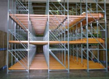 壓入式貨架主要由柱片、橫梁、軌道、運(yùn)載小車組成。軌道按一定角度傾斜固定在貨架橫梁上,運(yùn)載小車沿軌道運(yùn)行。由前方將托盤貨物推入,托盤物品置于滑座上,后來(lái)填入的會(huì)將原先的推到后方,目前可推入托盤。滑座跨于滑軌上,滑軌本身具有傾斜角度,滑座會(huì)自動(dòng)滑向前方入口。整體結(jié)構(gòu)采用“彈夾”原理,托盤放置在運(yùn)載小車上依次被推入貨架內(nèi)部,存取方式與貫通式貨架相同,但叉車不需要進(jìn)入貨架內(nèi)部,由于在貨架深度方向可以設(shè)計(jì)為多個(gè)托盤位置,后推式貨架的空間利用率高于普通貨架。安全性及運(yùn)轉(zhuǎn)效率都遠(yuǎn)高于貫通式貨架,廣泛應(yīng)用與冷庫(kù)、圖書、電子等行業(yè)。