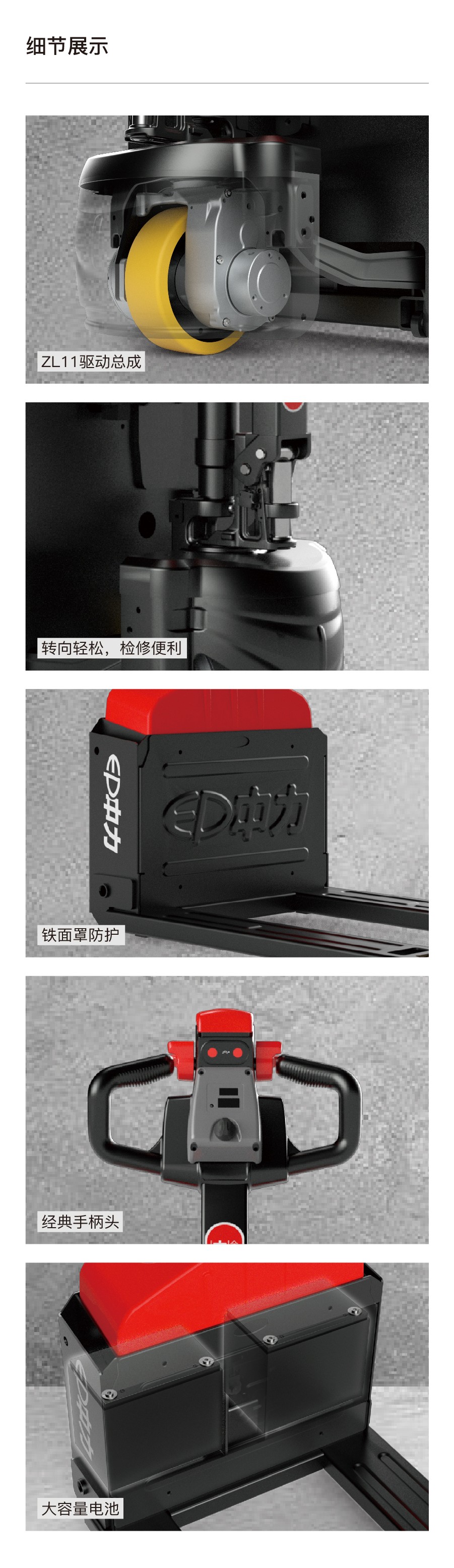 經(jīng)典大手柄頭,標(biāo)配直立龜速行走開關(guān) :