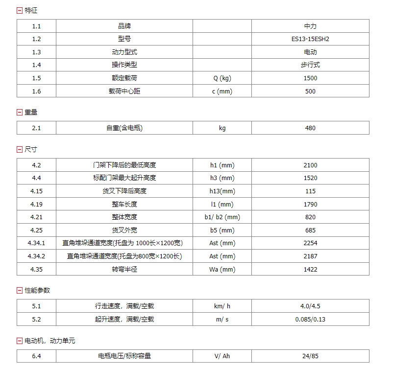 ES13-15ESH2 1.5噸電動(dòng)堆高車