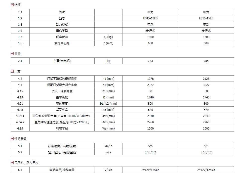 ES15-15ES/ES15-18ES 1.5/1.8噸電動(dòng)堆高車