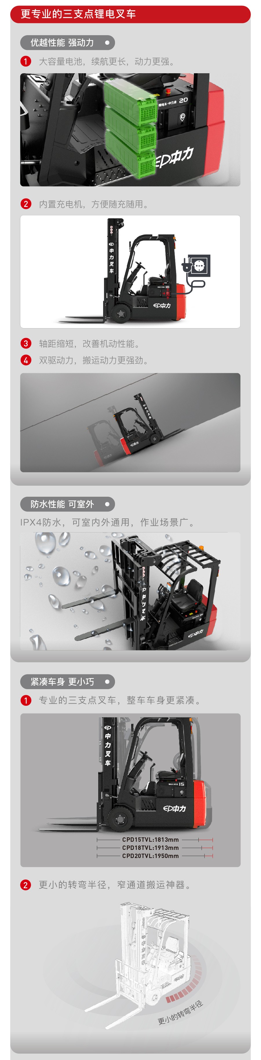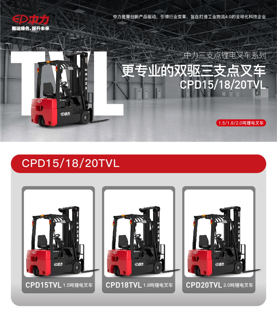 CPD15/18/20TVL 1.5/1.8/2.0噸雙驅(qū)三支點(diǎn)叉車(chē) 鋰電