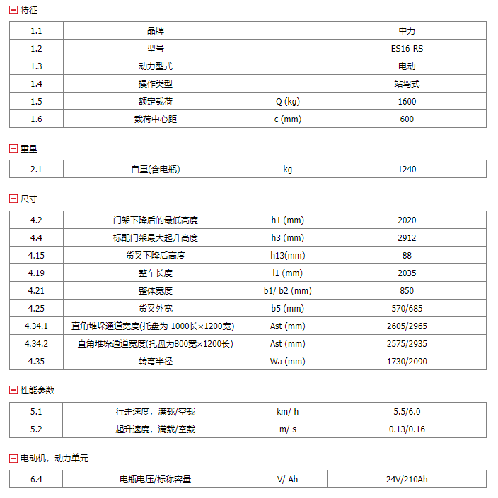 ES16-RS1.6噸電動堆高車 電子轉(zhuǎn)向