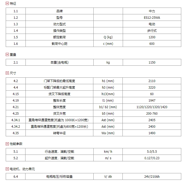 ES12-25WA 1.2噸電動(dòng)堆高車(寬腿)