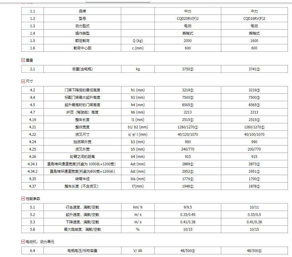 CQD16/20RV(F)2 1.6/2.0噸電動前移式叉車