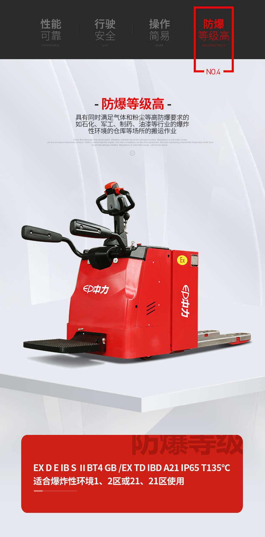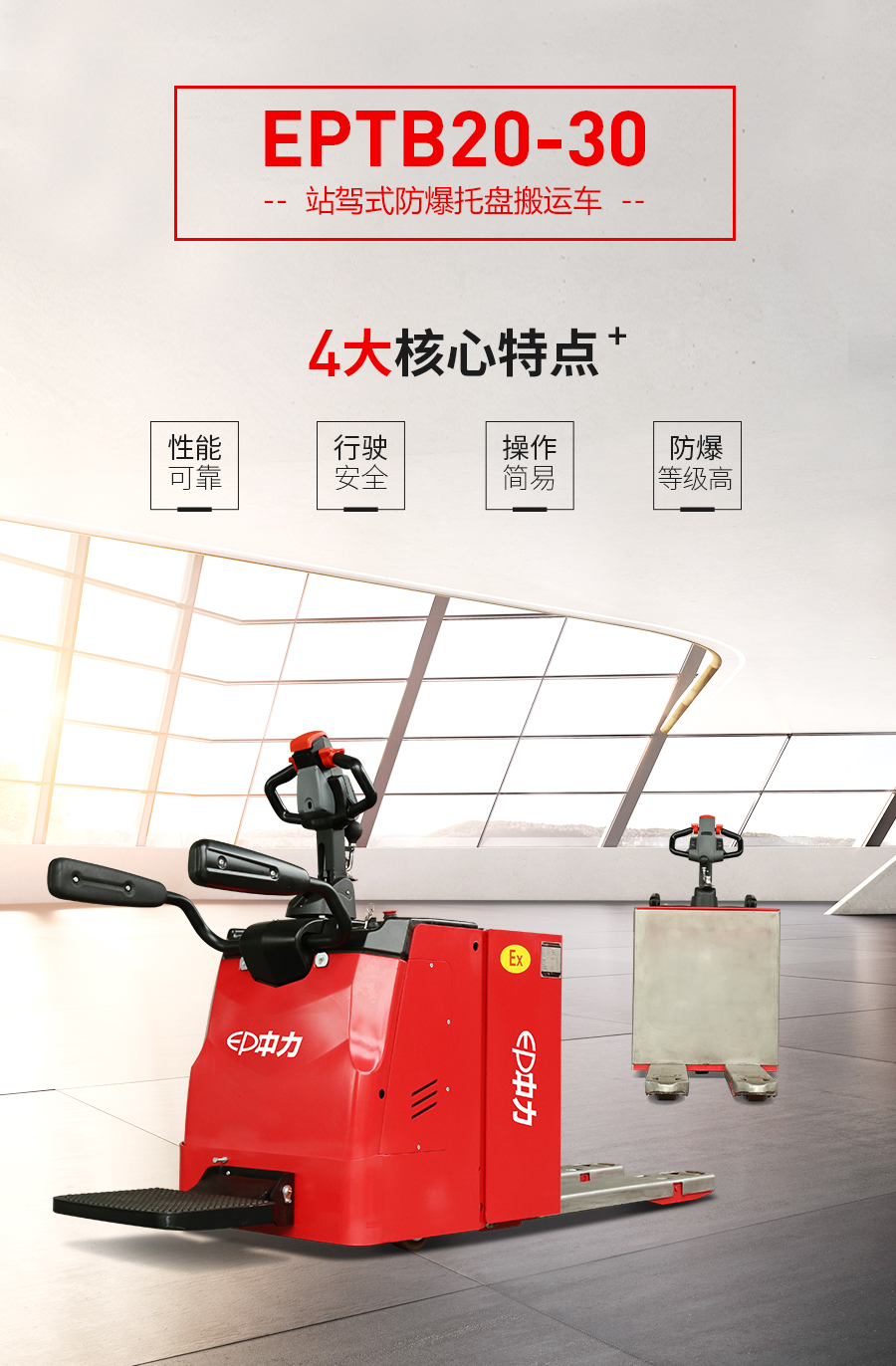 EPTB20/EPTB25/EPTB30 2.0/2.5/3.0噸站駕式防爆托盤搬運(yùn)車