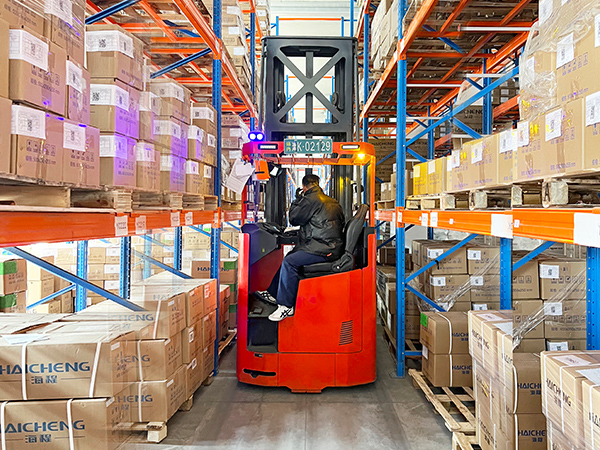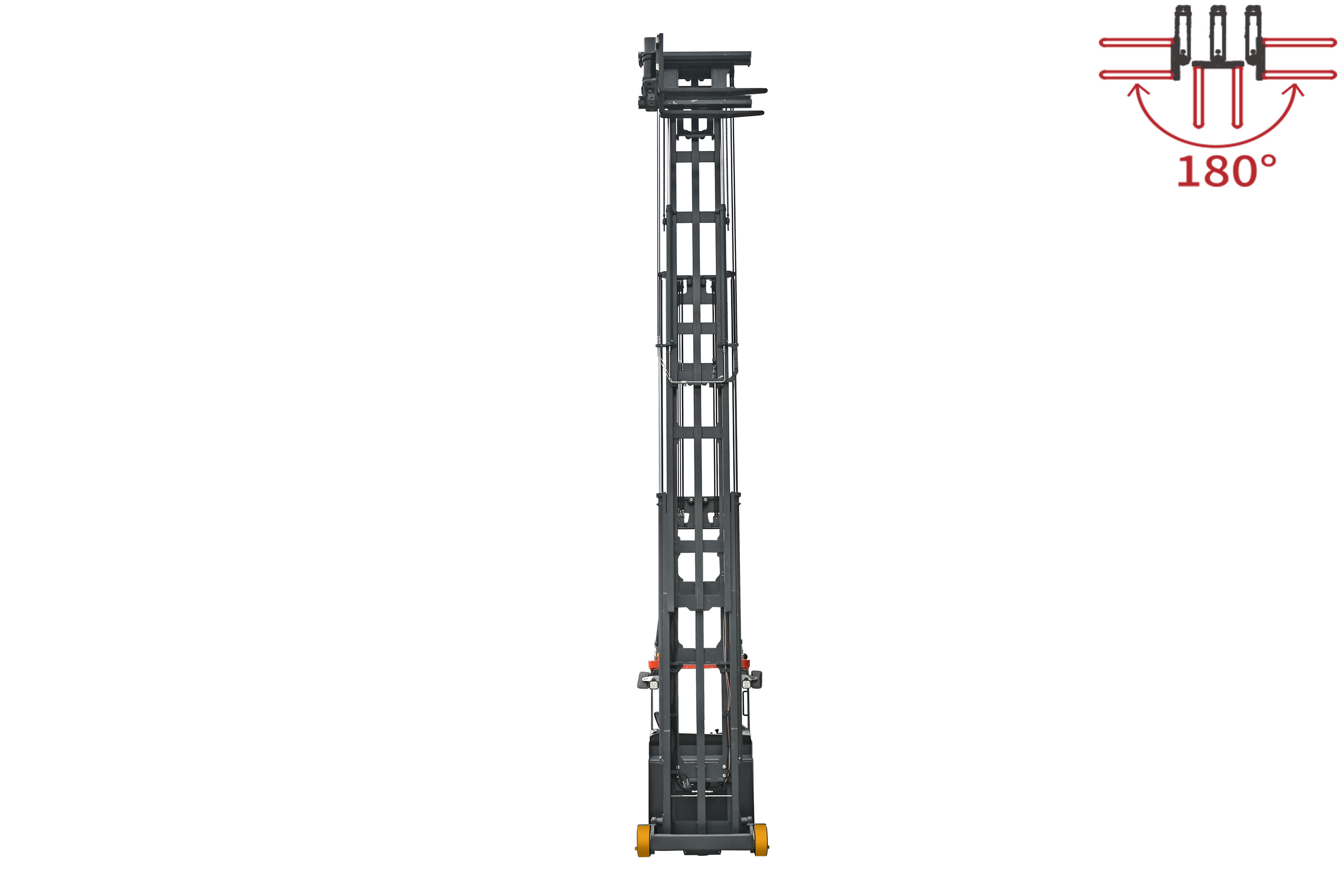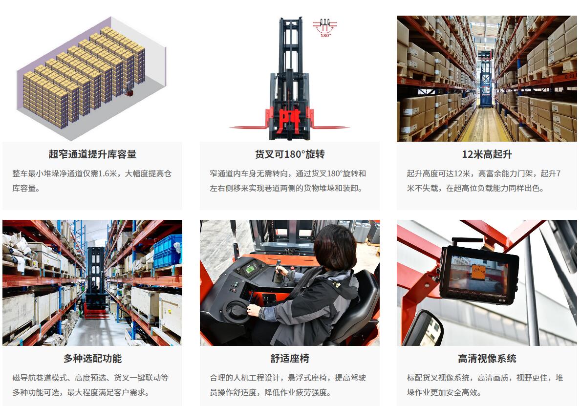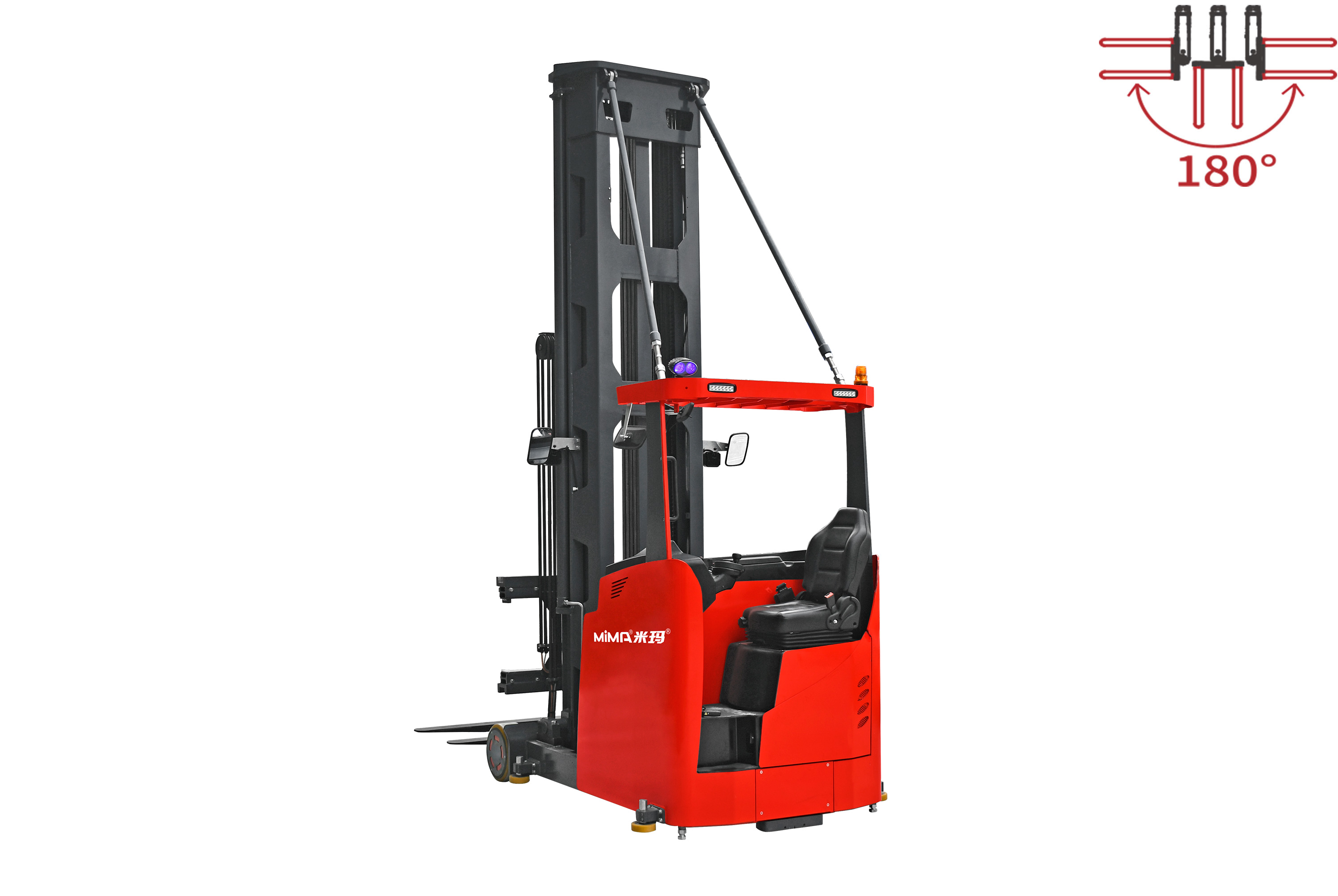 MCA16坐駕式三向堆垛車,起升高度4.5-12m;又車無需轉(zhuǎn)向,通過貨叉旋轉(zhuǎn)、側(cè)移來實現(xiàn)兩側(cè)的貨物堆垛和取貨,應(yīng)用于窄巷道倉儲堆。 :