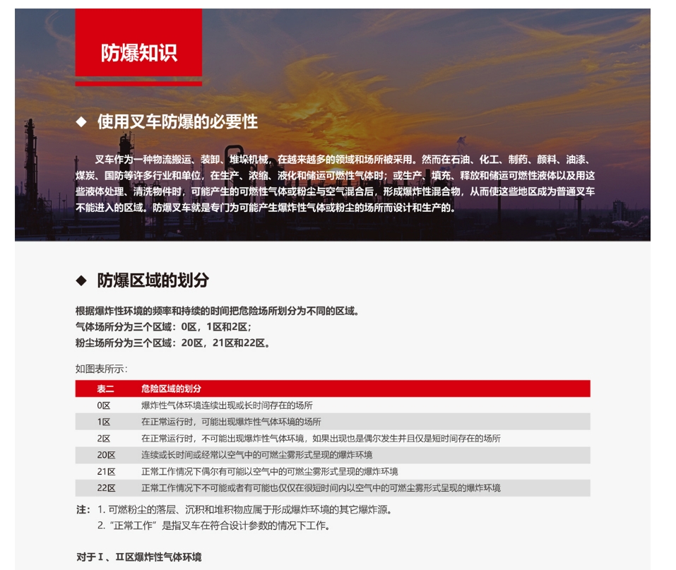 具有自主知識產(chǎn)權的整機制造型內(nèi)燃防爆叉車;總體防爆設計,防爆可靠性高,性能優(yōu)越; :