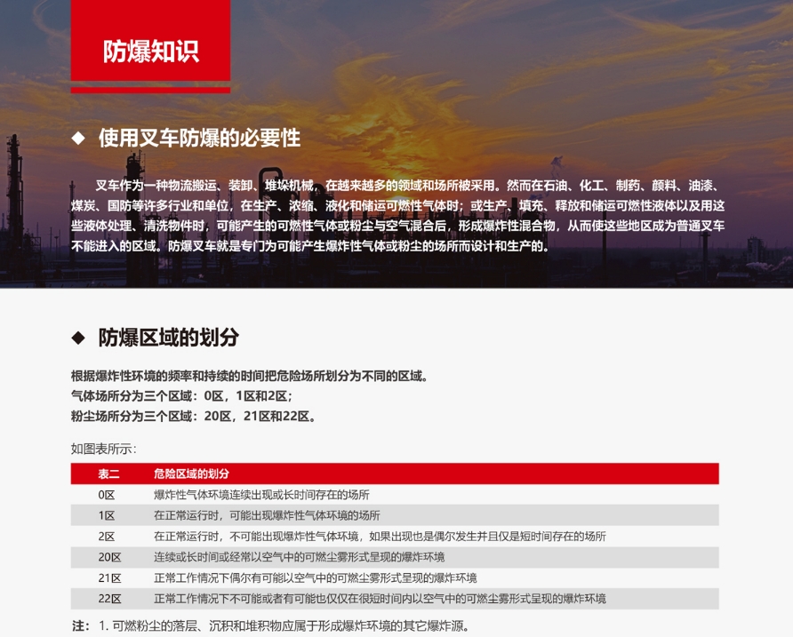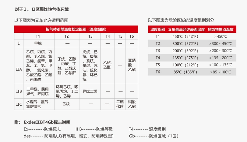 防爆標(biāo)志為Ex de ib s ⅡB T4 Gb /Ex tD ibD A21 IP65 T135℃。適合爆 炸性氣體環(huán)境(1、2區(qū))及非導(dǎo)電性粉塵環(huán)境(21、22區(qū))等高防爆要求場合使用,如石化、軍工、制藥、油漆、煤化、粉體、酒廠等行業(yè)的爆炸性環(huán)境的生產(chǎn)、倉庫等場所的搬運裝卸作業(yè); :