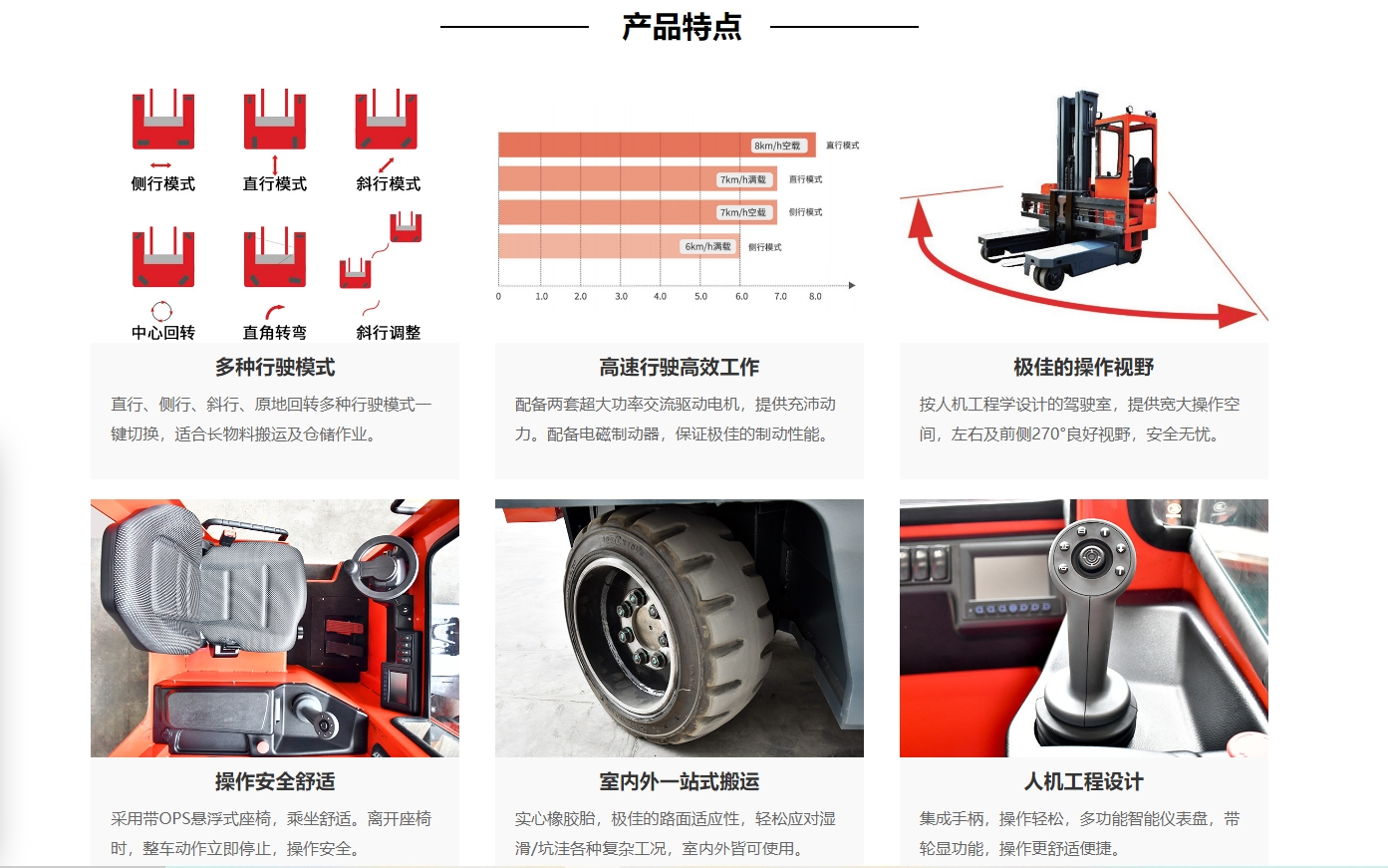 MQC25/30全向前移式叉車,承載能力2.5噸 /3.0噸,門架可以整體前移或縮回配置有加寬調(diào)距貨叉,四輪轉(zhuǎn)向獨(dú)立控制,可以直行、側(cè)行、斜行、原地回轉(zhuǎn)側(cè)行時擁有較小的通道,特別適用于長物料的工況。 :